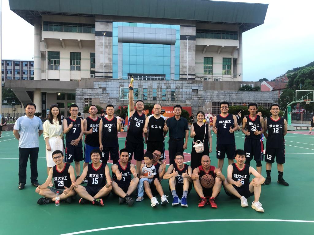 比赛采用循环赛为赛制,获胜1场积3分,同积分看胜负关系,同积分无胜负关系以净胜分为准。最终以积分高低顺序决出冠亚季殿军,并授予奖杯。6月18日周五下午18:00,在简单的赛前动员后,按照之前的抽签顺序,物理院VS化工院,以及材料院VS生物院同时进行,各队之间展开了激烈对抗,由校裁判协会专业裁判负责对比赛进行判定和计分。接下来6月20日和7月5日下午18:00分别进行了最后几轮循环赛。比赛过程很激烈,但老师们始终保持友谊第一的原则,赛后相互致敬握手,合影留念,并相互加微信以方便今后的学术合作交流。最终,在拉拉队的欢呼呐喊声中,球友会篮球协会力压其他公司获得本次篮球比赛的冠军。