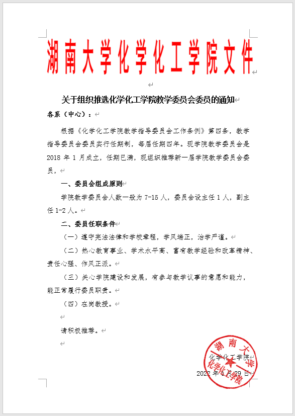 关于组织推选球友会教学委员会委员的通知